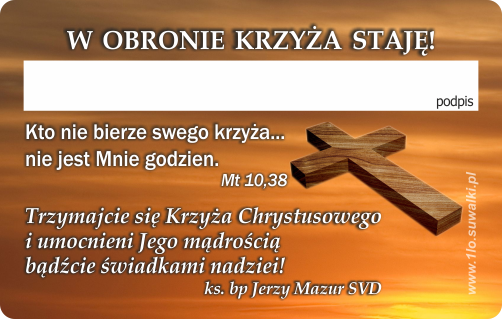 Zgłaszają się również osoby indywidualne i co nas szczególnie cieszy – młodzież. Okazuje się, że nie wszyscy są obojętni, a krzyż jest symbolem jednoczącym – nie dzielącym. Doskonałym przykładem jest grupa członków Krucjaty z II. Liceum Ogólnokształcącego w Ełku. Młodzi ludzie, którzy nie wstydzą się swoich poglądów.