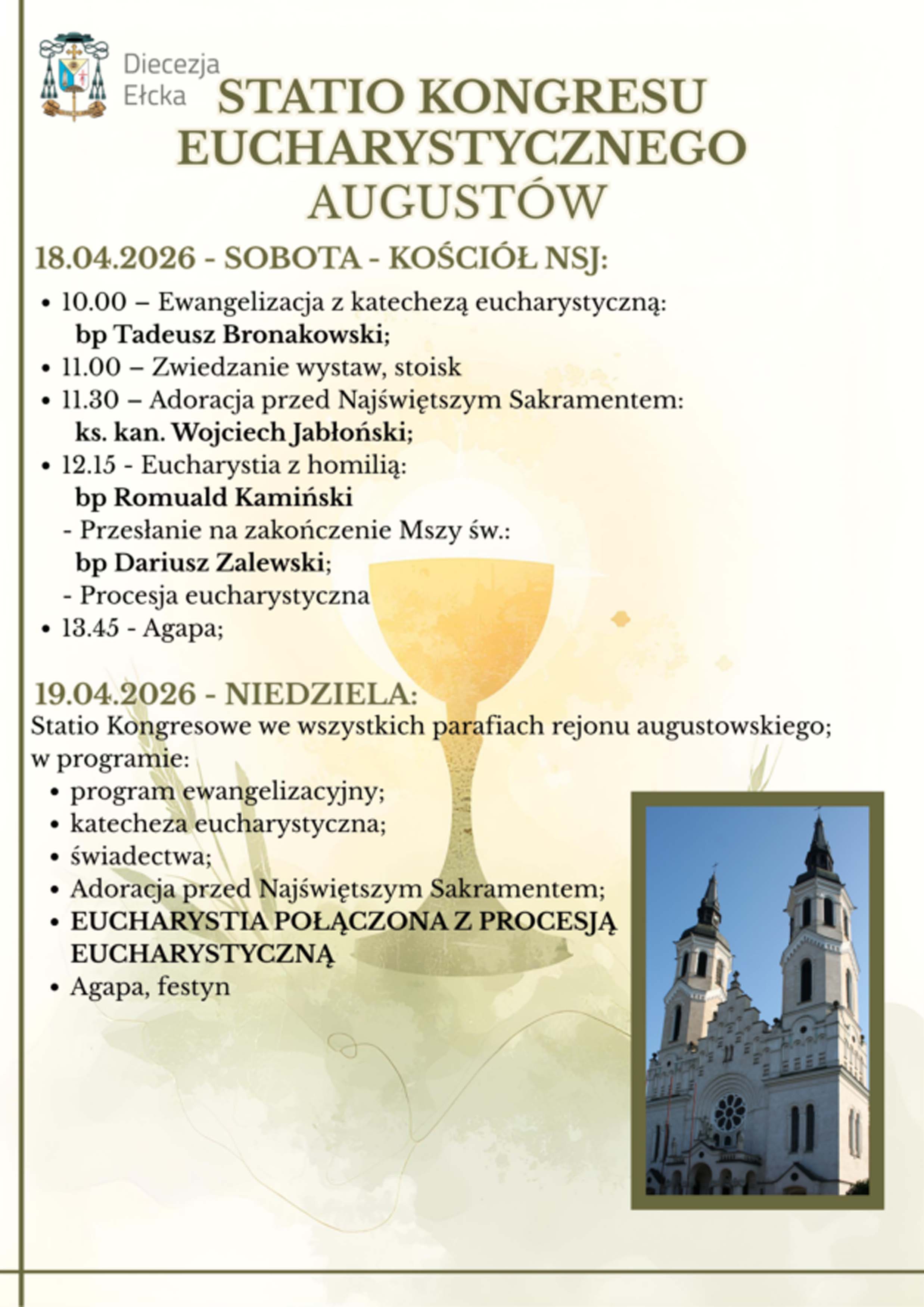 - 10:00 - Ewangelizacja z katechezą eucharystyczną - bp Tadeusz Bronakowski
